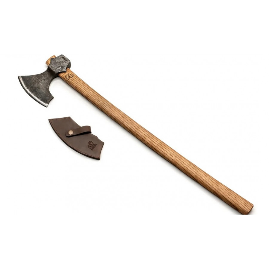 Dlhá rukoväť z pevného jaseňového dreva je impregnovaná prírodným ľanovým olejom a voskom. Sekera sa dodáva s koženým chráničom ostria, vyrobené z pravej kože.