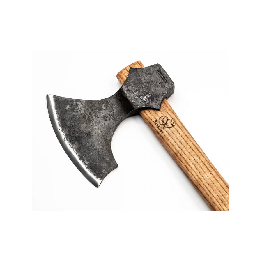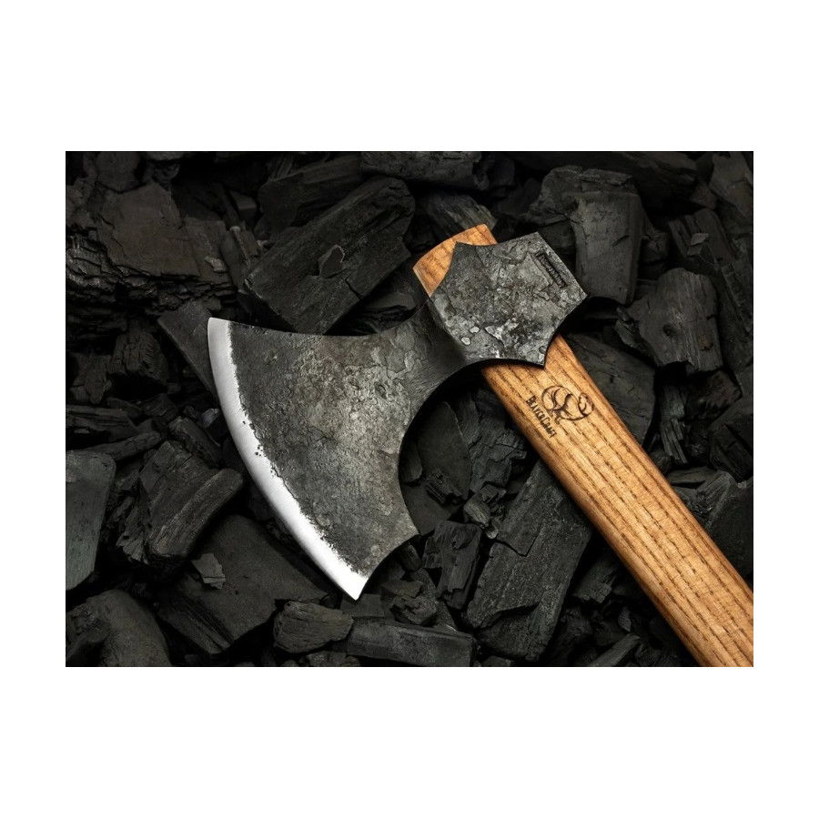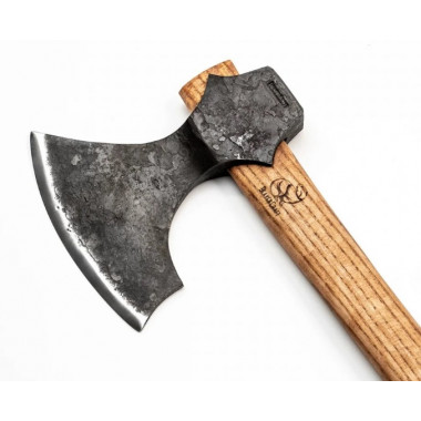 Hlava sekery je vyrobená z ručne kovanej uhlíkovej ocele 65G, čo vytvára jedinečný design. Sekera má už od výroby veľmi ostrý konvexný výbrus a je pripravená na okamžité použitie. Zaoblené, široké ostrie umožňuje veľmi hlboké záseky do dreva, čo vám výrazne uľahčí prácu.