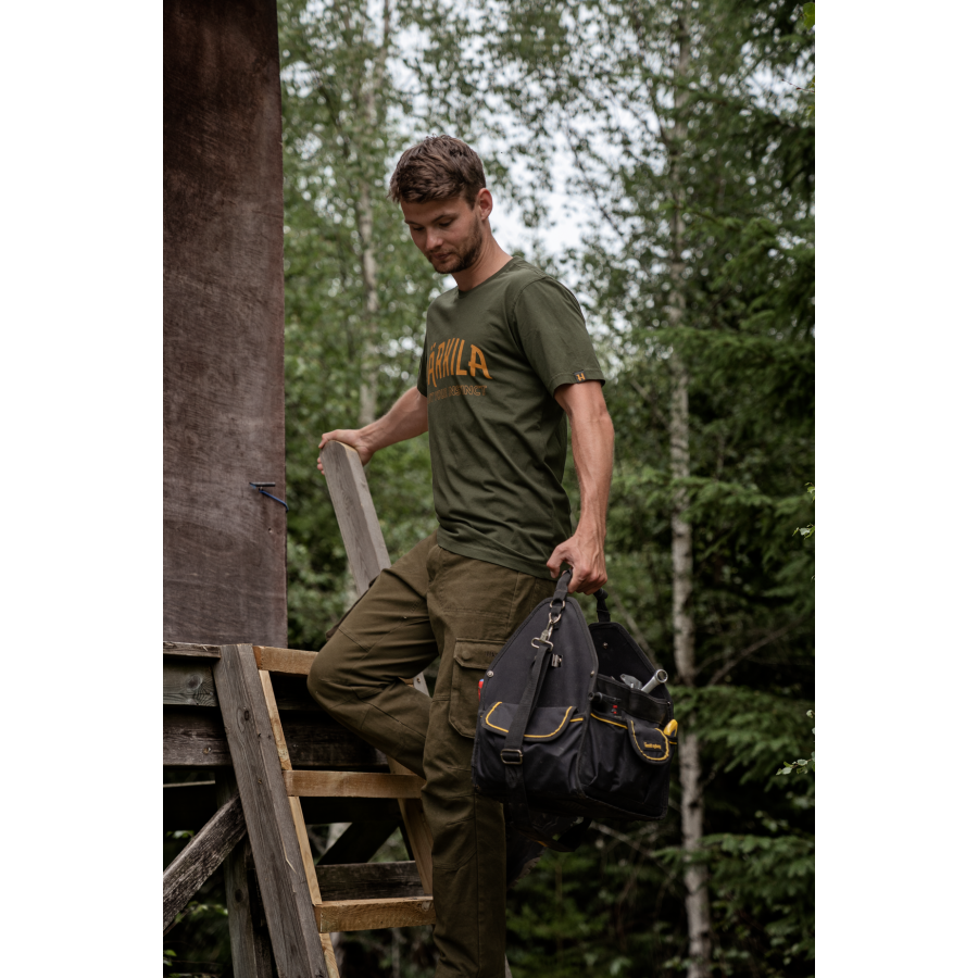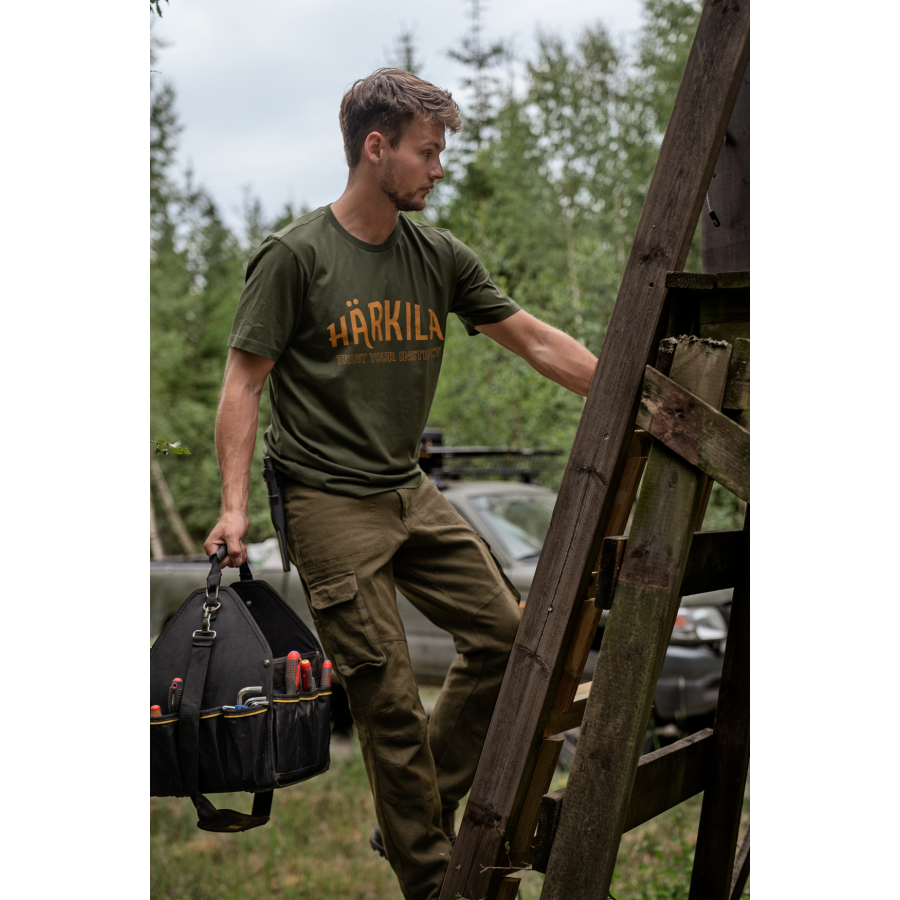 Pohodlné tričko značky Härkila s logom, ľahká zmes 100 % bavlny, ideálne na vrstvenie alebo samostatné nosenie. Klasický vzhľad