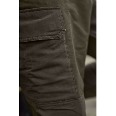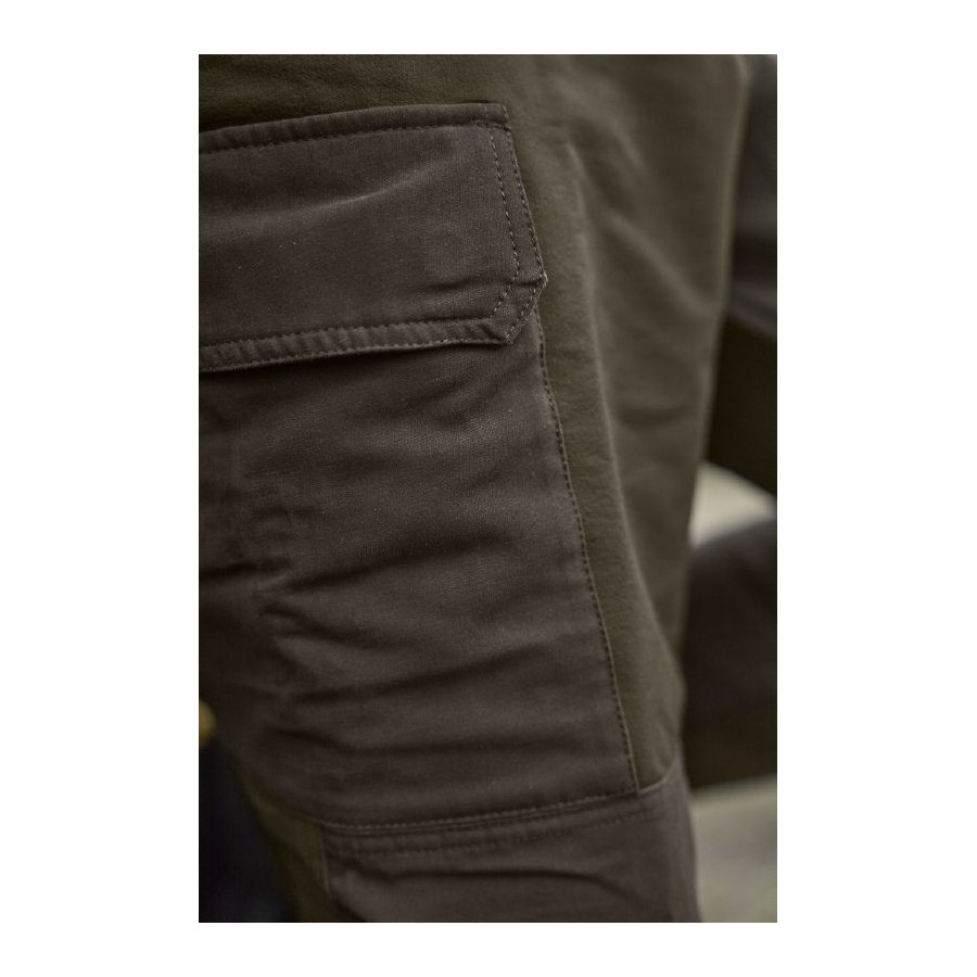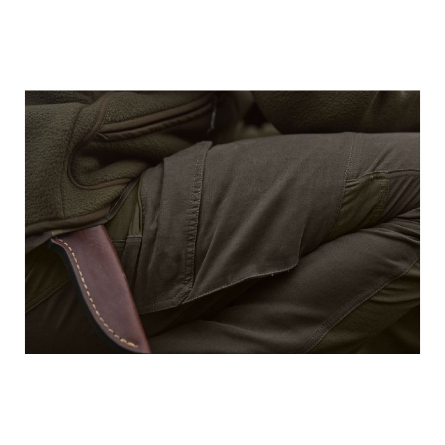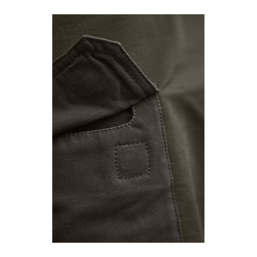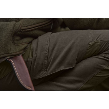 Nohavice majú ľahko prístupné horné vrecká a stehenné vrecká s ochrannými chlopňami zaistené tichými magnetickými patentmi. V pravom stehennom vrecku je umiestnené puzdro na náboje. Nastavovací pásik na spodnom leme umožňuje prispôsobenie strihu. Koženkový štítok s logom dodáva týmto funkčným nohaviciam štýl. Vďaka modernému strihu a úprave DWR bez obsahu PFAS sú nohavice Hill ideálnou voľbou pre aktívnych lovcov, ktorí hľadajú pohodlie a spoľahlivosť