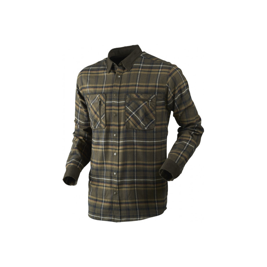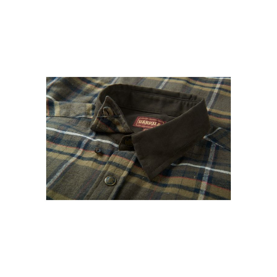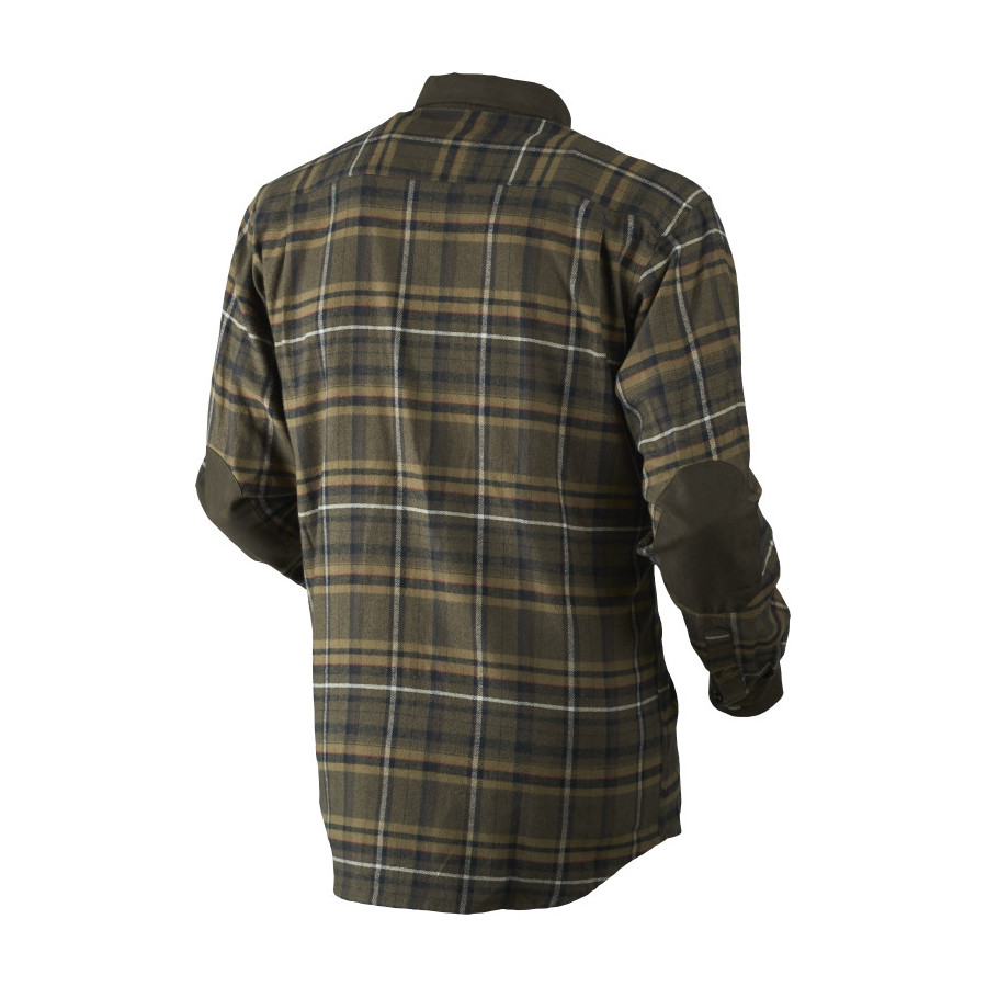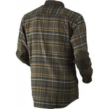 Kvalitná elegantná károvaná košeľa s prešívaním na límci, lakťoch a manžetách