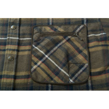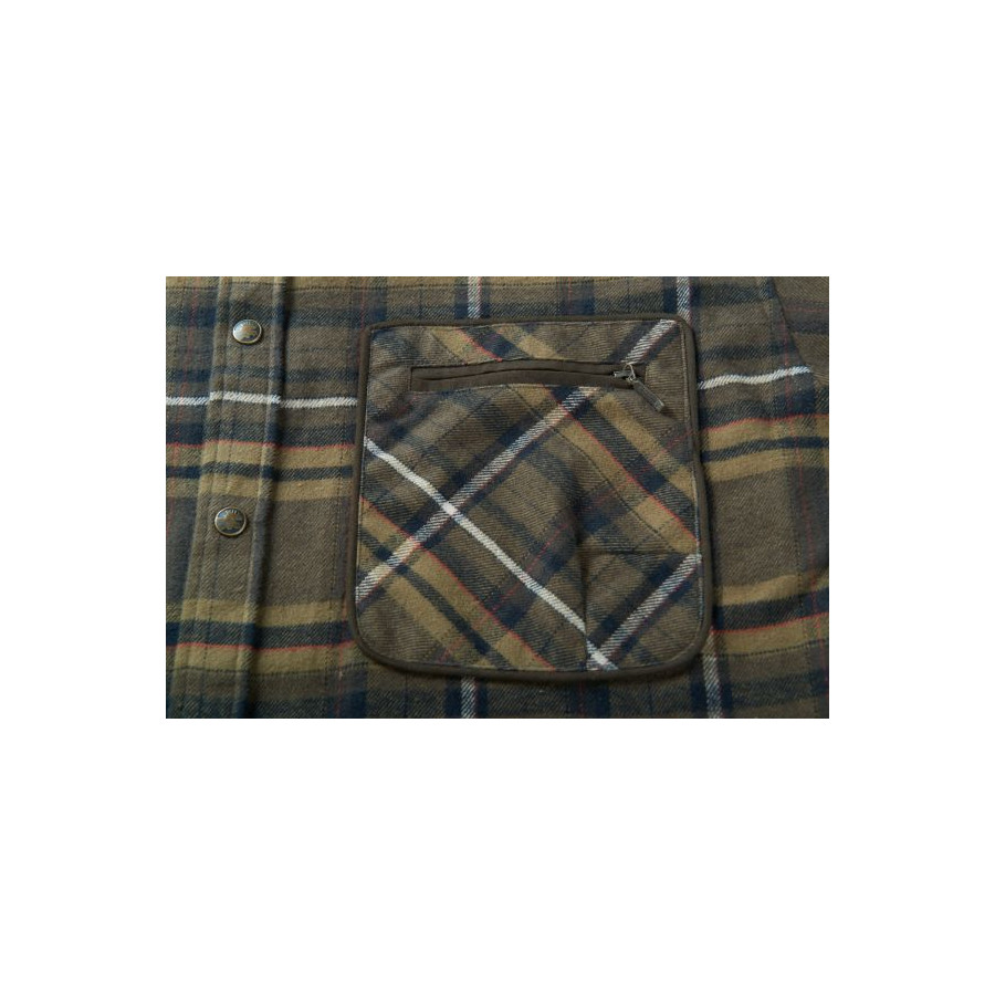 Dve praktické náprsné vrecká so zipsom, jedno s vertikálnym zipsom a jedno s horizontálnym zipsom a predné zapínanie na cvoky.