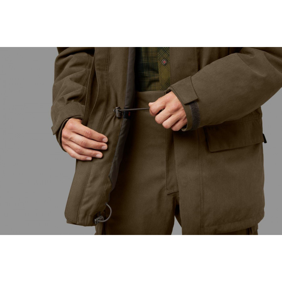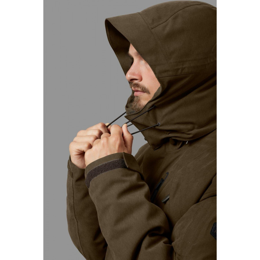 Bunda má aj vetruodolnú a vodeodolnú dvojvrstvovú membránu HWS® Härkila Weather System, ktorá odolá jesennej plieskanici a dažďu. Bunda má takú dĺžku, aby udržala vašu bedrovú oblasť a boky v teple a nebude sa vám vyhrňovať, keď sa posadíte