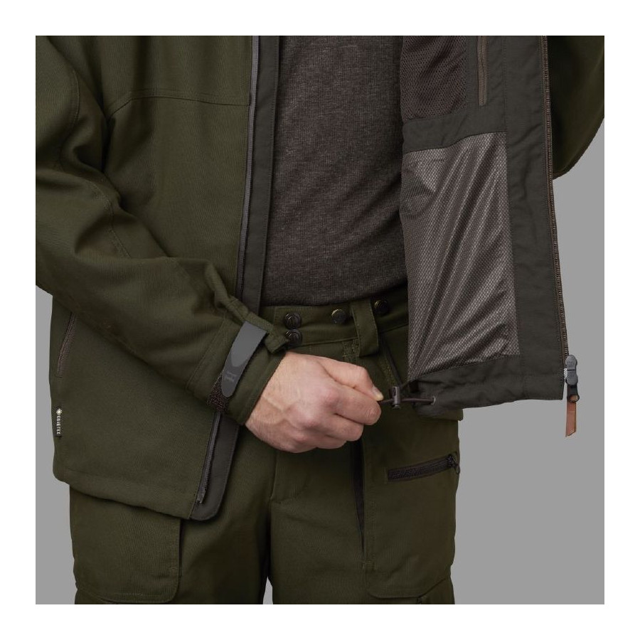 Pro Hunter Move 2.0 GTX je vyrobená zo silného materiálu AirTechTM, vetruodolného a mimoriadne odolného plátna. Bunda je tiež vybavená vetruodolnou a nepremokavou membránou GORE-TEX® a má zipsy pod pažami, ktoré zaisťujú ventiláciu v čase vysokej námahy