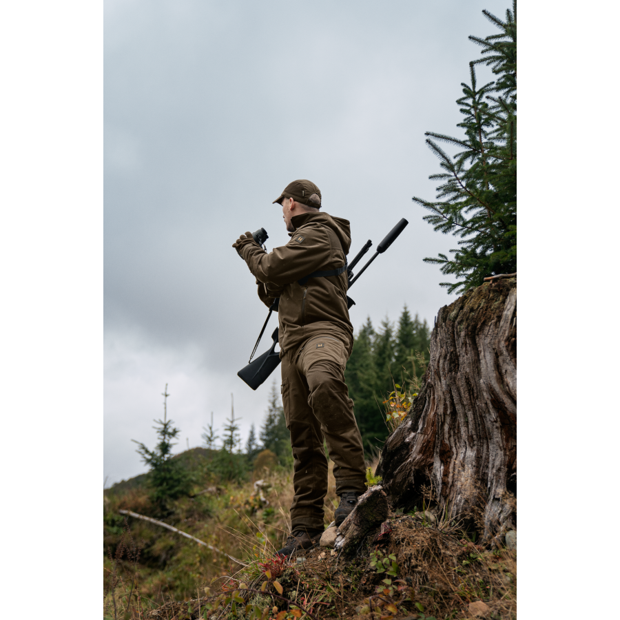 Forest Hunter GTX je určená na aktívny lov v náročných lesných a horských prostrediach. Vyrobená z tichej, ľahkej a robustnej trikotovej tkaniny, je navrhnutá tak, aby odolala nepredvídateľnému severoeurópskemu počasiu.